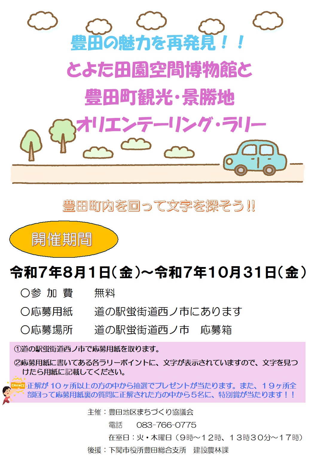 第2弾となる『豊田の魅力を再発見‼ とよた田園空間博物館と豊田町観光・景勝地 オリエンテーリング・ラリー』を開催します。